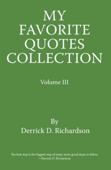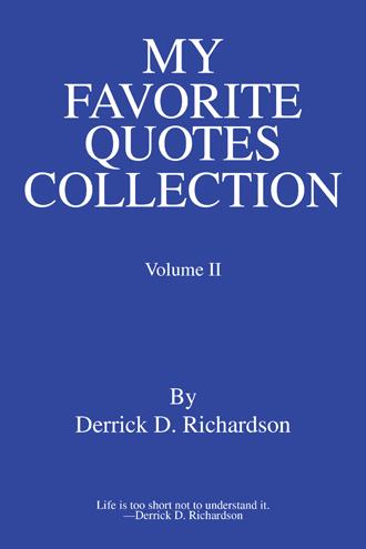 Derrick Richardson showcases his life experiences in his second collection of favorite inspirational, humorous, and motivational quotes. Richardson has been writing and collecting quotes for several years. In this compilation, he shows you just how the seemingly simple events in life may often turn out to be more difficult than expected. By including his own quotes as well as quotes from others, he encourages you to reflect on both your past and present experiences and then combine the two to help discover what you are really striving to achieve in life. Richardson includes just one quote on each page, leaving space for you to write your thoughts or comments below, creating a personal journal to treasure for years to come. Life is not easy. My Favorite Quotes Collection will help you realize that life is a circle of good and bad and that you do have the strength to overcome it all. Surrender to the power in yourself, and learn to enjoy life!