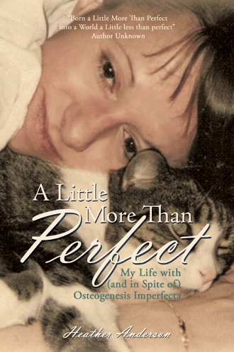 A Little More Than Perfect is Heather’s inspiring true story of living with a disorder that touches every part of her life. The disease makes her bones incredibly fragile, and the slightest touch can sometimes cause a fracture. This led to numerous trips to the hospital, casts, and surgeries. Yet from an early age, Heather refused to let the disability stop her. She graduated high school, attended University, learned how to drive, and even started her own business. At the age of twenty-four, she moved into an apartment of her own and found the independence she so craved.