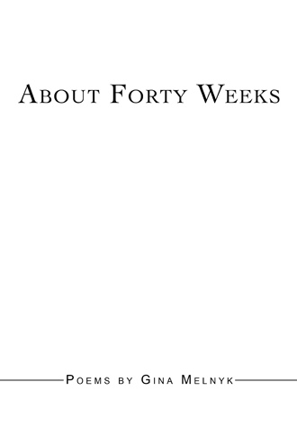 In her second collection, poet GINA MELNYK explores experiences unique to pregnancy and motherhood. After having her first child in 2007, she was compelled to record her reflections on forty weeks of pregnancy, and how life changes with a new member of the family.