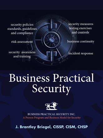 A complete and proven Information Security Program manual used by numerous organizations to apply practical security controls. The Business Practical Security manual has been customized and implemented in industries such as financial, legal, medical, government, engineering, manufacturing, education, religion, nonprofit, advertising, broadcasting, and more. The manual contains template policies, standards, guidelines, and risk management tools. The publication is not a read Front-to-Back book. It contains actual documents which have been successfully implemented and still in use today by numerous organizations. The manual is organized to facilitate an Information Security Program to achieve regulatory compliance such as Sarbanes-Oxley, HIPAA, GLBA, and PCI/DSS. Adherence to ISO/27000 and the National Institute of Standards Technology (NIST) has been applied. The publication interacts with business continuity and disaster recovery planning through a business impact assessment tool.